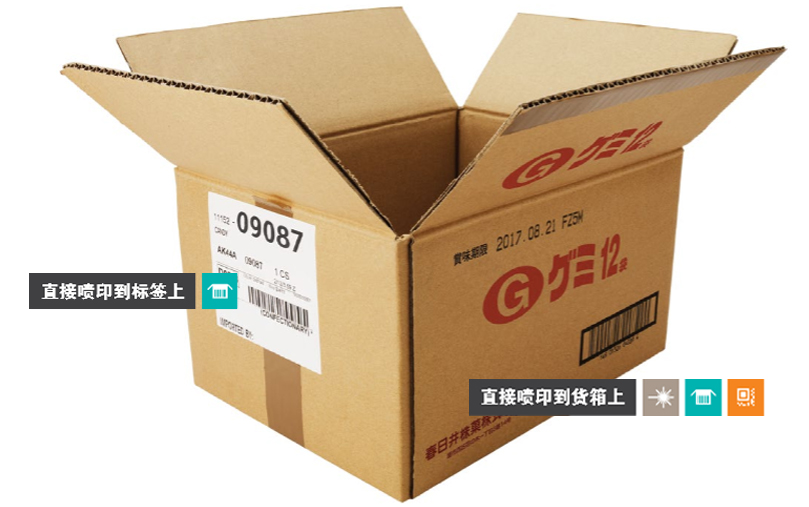基于墨水的非接触式高大编码喷印,包括主要用于货箱包装的大尺寸字母数字、商标和条码