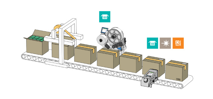 有数种喷印方案可用于此应用,且这些方案可与装盒机集成,或直接集成到出料口的下游位置。最佳安装位置将取决于装盒机和首选喷码技术的尺寸限制。