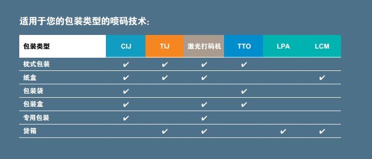 - 多种喷码解决方案几乎适用于任何包装材料、尺寸或颜色