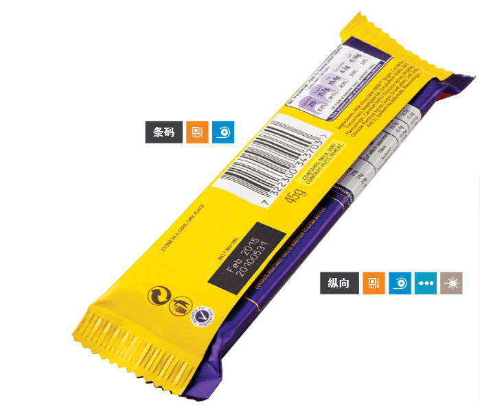 - 适用于在预印聚丙烯薄膜上标识编码,其大标识区域有助于优化功率设置并避免薄膜烧穿