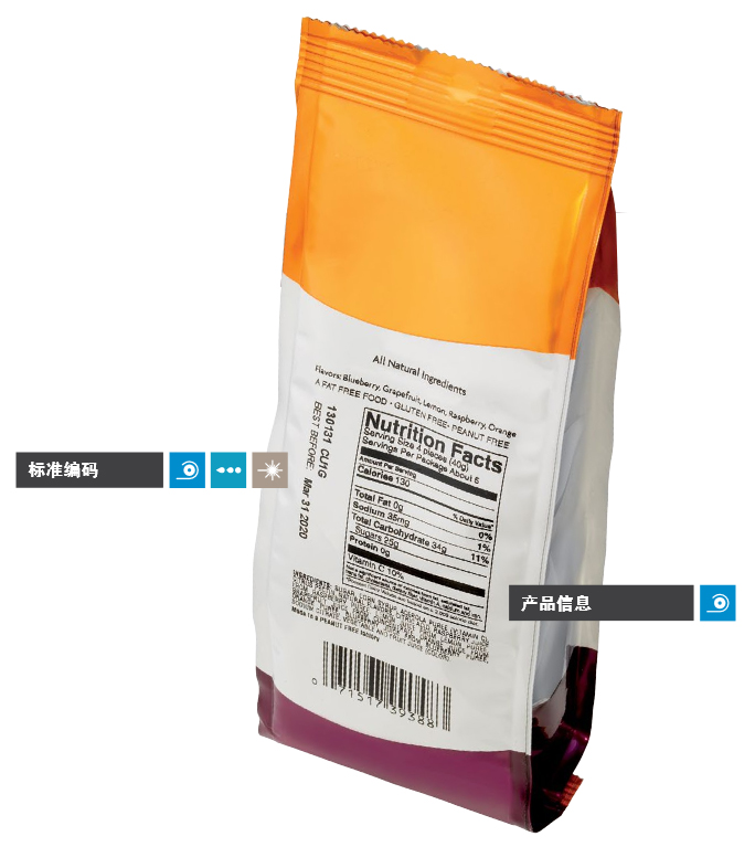 - 适用于喷印日期、徽标、条码、营养成分、其他产品信息和图形