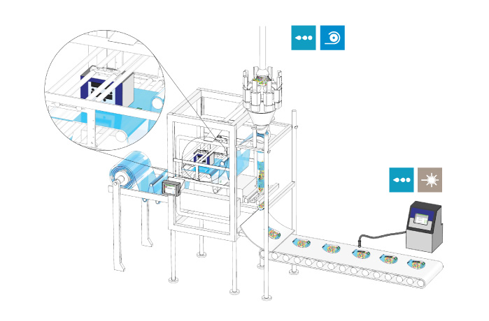 无论是间歇模式还是连续模式,伟迪捷都能够提供各种喷码机以处理越来越复杂的 VFFS 包装袋。包装功能(例如拉链和角撑板),以及 VFFS 生产线类型都需要谨慎地选择合适的喷码技术。