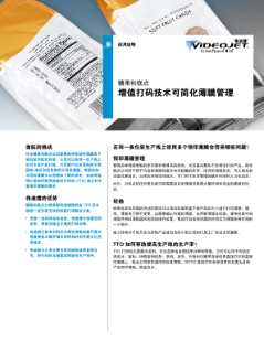 对在同一生产线上运行的多种产品使用的多种预印薄膜进行管理不仅麻烦,而且成本也很高。使用 TTO,您能够在包装过程中打印产品信息,从而减少预印薄膜的种类。TTO 可打印高分辨率徽标、条码和产品信息,您使用 TTO 可实现最大的灵活性和最高的效率。