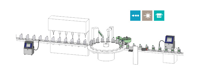 - 轻松集成到生产线,以便在各种材质的肩部、顶部和底部进行喷印