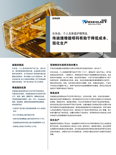 化妆品包装设计不仅能够提升品牌辨识度,还传递产品的高品质形象。产品编码不仅能在包装上传递关键信息,还能增强品牌形象和产品的质量感。通过增值喷码策略,您可以有效减少预印库存,并借助防伪与转移解决方案,为品牌提供更全面的保护。 伟迪捷提供各种化妆品以及个人护理用品标识喷码解决方案,有多种化妆品包装、护肤品、日化喷码机可供选择,可始终提供适合各种产品的理想编码,同时确保必要的灵活性和高效性。