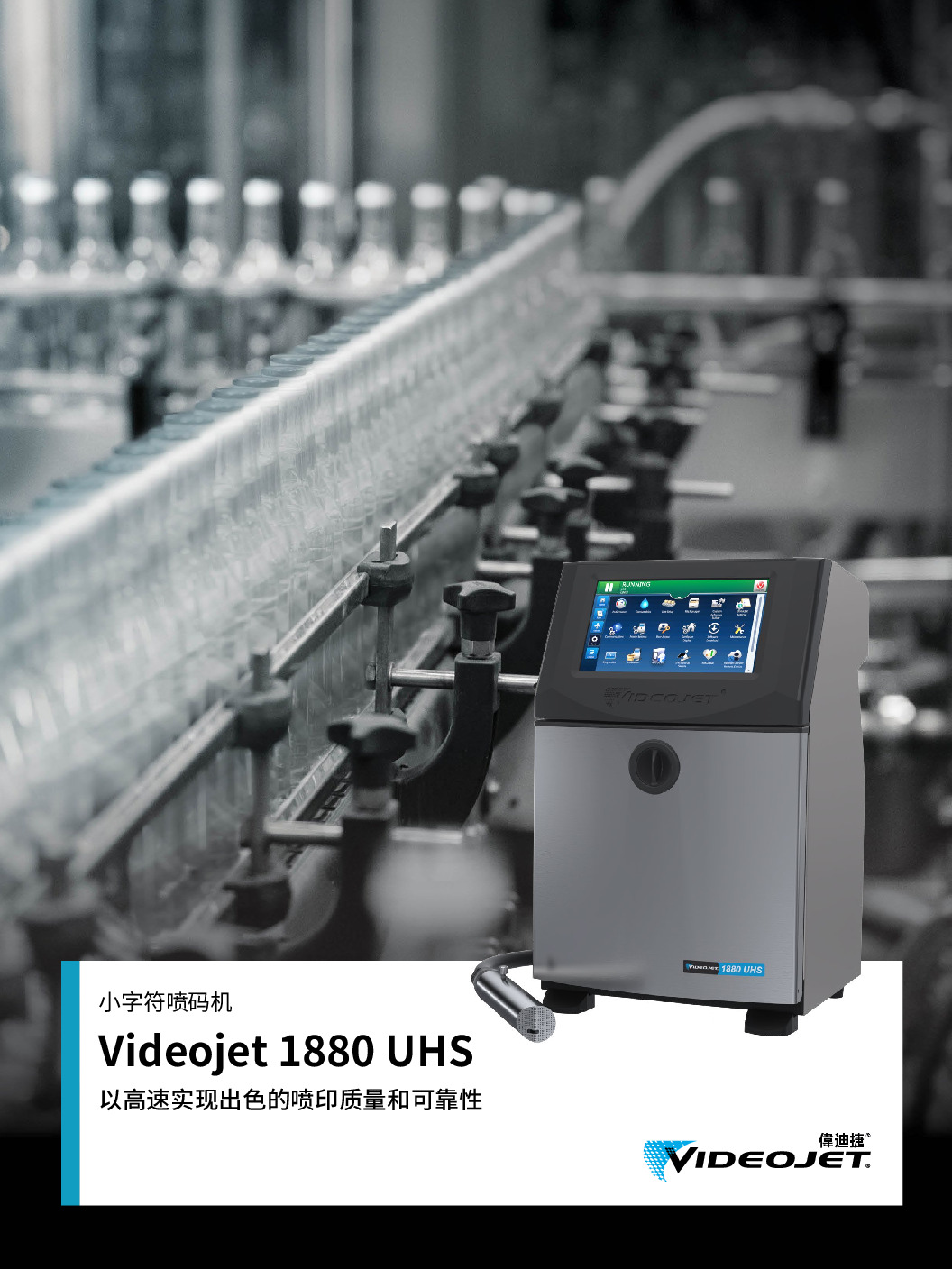 伟迪捷的连续喷墨打码机很适合在平面或曲面上打印最多五行的文本、线性和2D条形码或图形,即使在高速和连续的生产环境中也是如此。丰富的CIJ墨水型号可以适用于任何的医药包装材料或者不同形状的医疗器械 。
