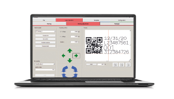 PC 软件用于创建更复杂的作业,例如在线飞行打标应用、字母数 字编码、序列号、条码和二维码。