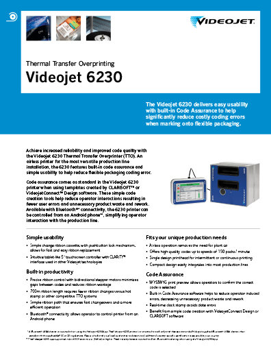 文档 欢迎咨询了解更多产品信息,获取产品报价: 400-920-2377 立即获取 ×联系我们:售前支持:400-920-2377售后支持:400-886-8099 主页 创新设计 编码质量保证 Bluetooth® 连接 文档 Videojet 6230 宣传册 下载 Videojet 6230 产品规格表 下载 主页 观看视频