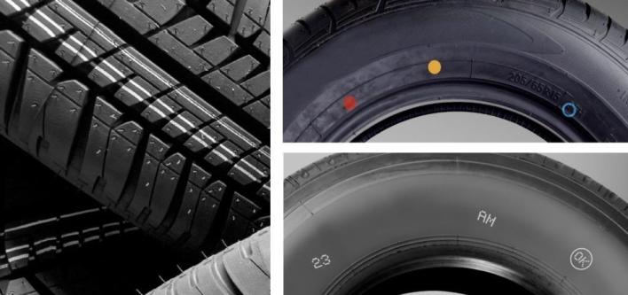 标识用于各种轮胎应用。该标识流程用于实现两个主要目的,一个目的是在生产过程中确定橡胶的加压层以进行跟踪(挤压橡胶喷码),另一个目的是根据各个 OEM 规格在成品轮胎的侧壁上进行标识(高点喷印)。