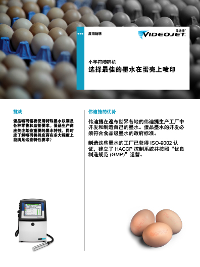 为生产符合相关法规并正确喷码的蛋品,您需要注意几项影响墨水选择的重要要求: